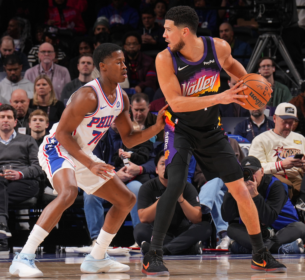 末节,古德温开场再中三分球,布克登场前两队的分差已经拉开到17分,马克西疯狂打铁,埃奇库姆继续苦撑球队,进入最后5分钟费城落后17分之多,太阳松的太快2分钟被打9-0,关键球还是布克命中,随后比赛走向完结。